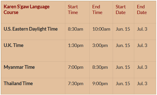 The Inya Institute is pleased to announce its 2026 language course series on three prominent languages spoken in Myanmar: (1) Kachin – Jinghpaw; (2) Karen – S’gaw; and (3) Shan – Tai long.