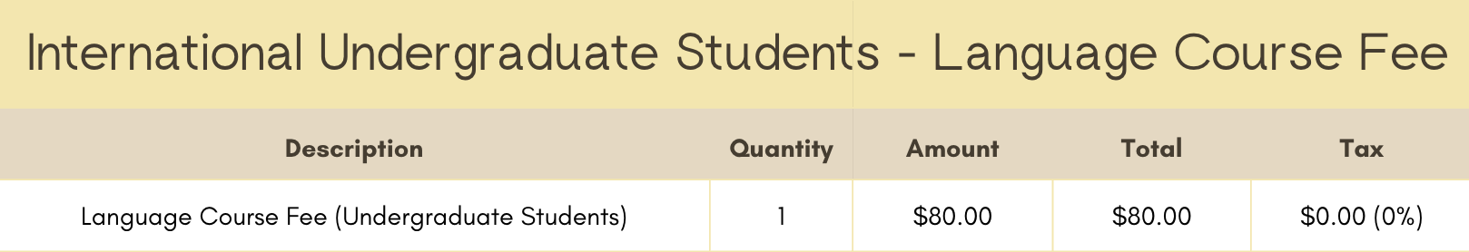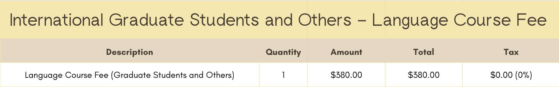 For International Participants, the course fee is $80 for undergraduate students and $380 for graduate students and other applicants. Payment of the course fee is online and will help to cover the cost of the language teachers’ tuition.