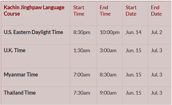 Registration for the language course and payment of the course fee will have to be made by June 5, 2026, 04:00PM (Myanmar Time).