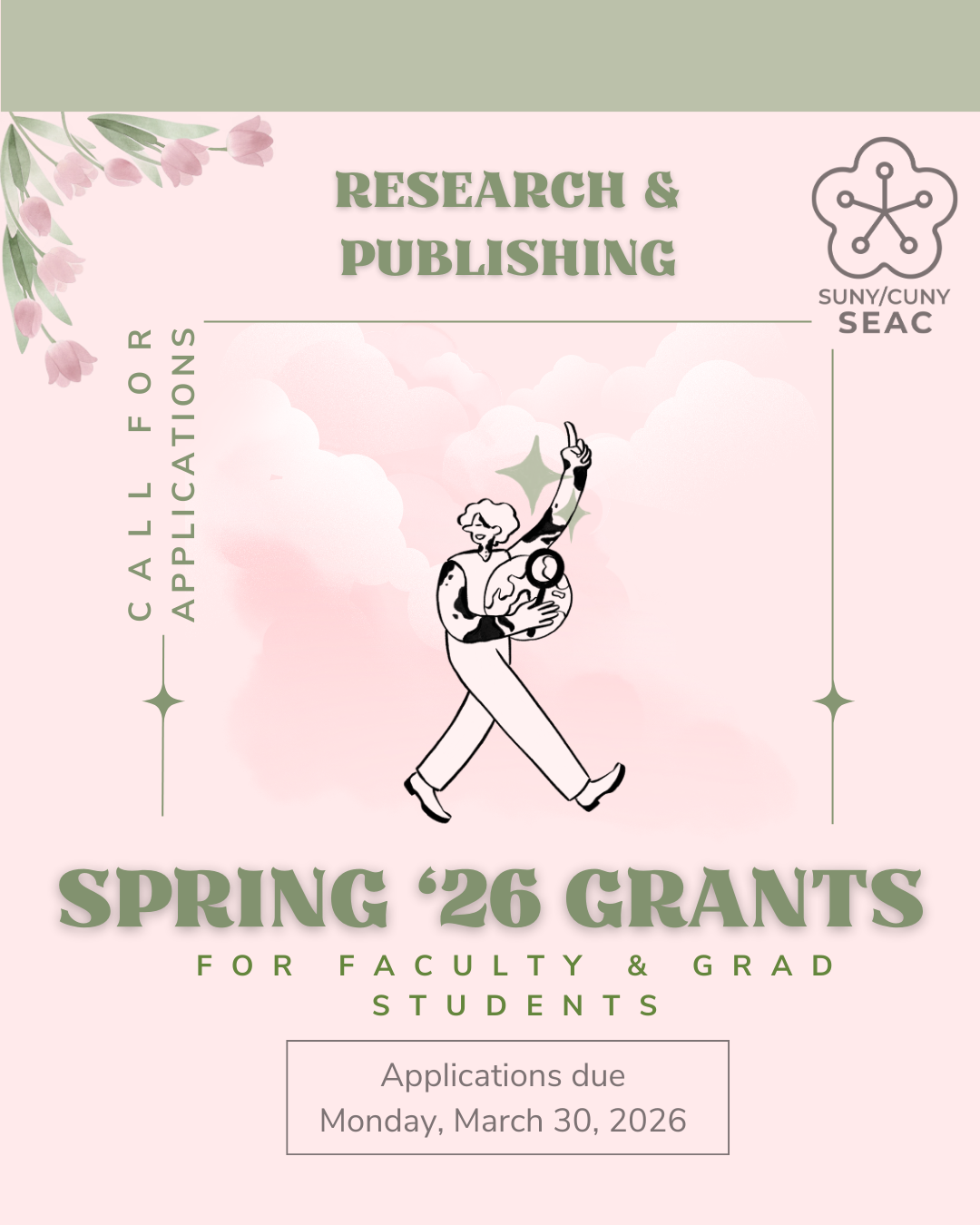 Recipients must be faculty, researchers, or students at a SUNY or CUNY institution at the time of the research in question. Funds should be expended by the start of Fall 2026 (though extensions may be possible).